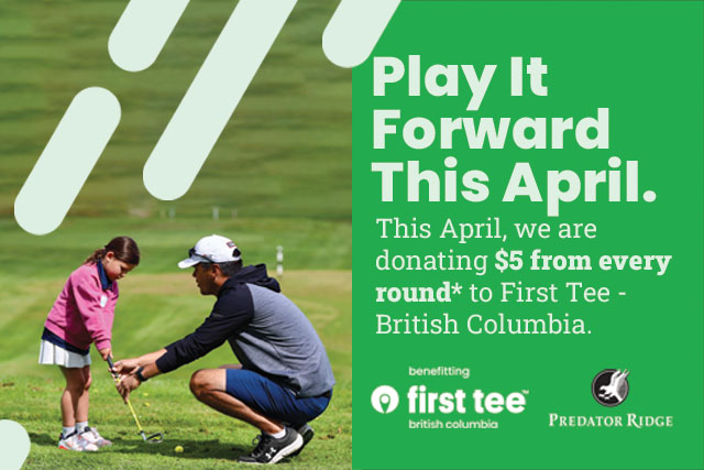 By supporting First Tee – British Columbia through the Play It Forward initiative this April, Predator Ridge continues its commitment to growing the game while helping create opportunities for youth to develop confidence, character, and leadership through golf.